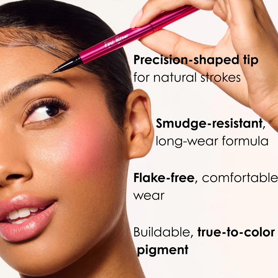 A 2-in-1 long-wear Clear Brow Gel and micro-fine Liquid Brow Definer Pen ideal for creating hair-like strokes, giving brows precise definition that lasts all day.